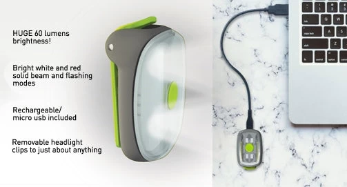 Super bright white/red rechargeable dual high-intensity LED clip light. Fastens directly to belts, straps, bags, packs and more for ultra-minimalist visibility. With a long lasting battery, you will be able to be seen for long periods of time so you will be at your safest.