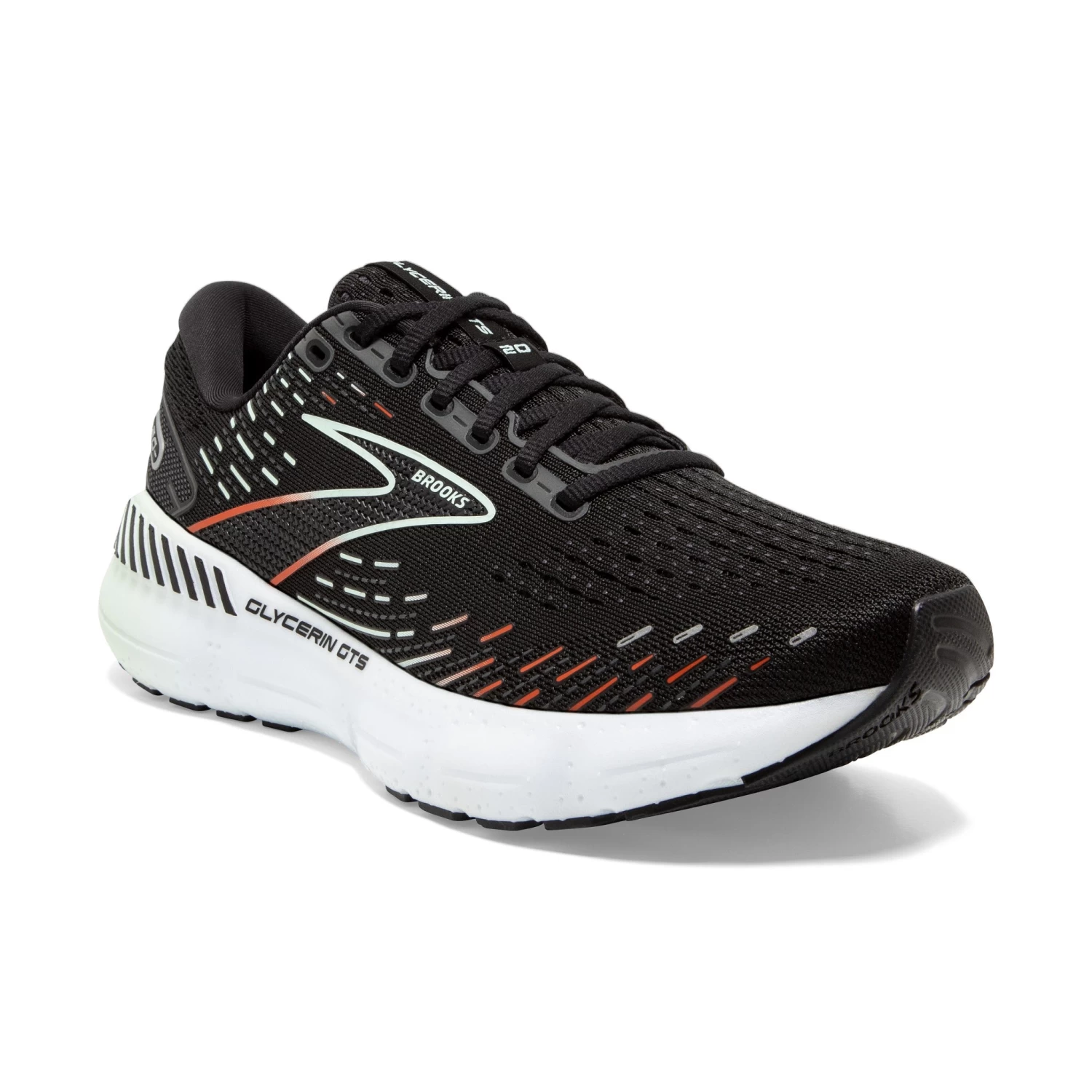 The softest cushioning from Brooks with industry-leading support for supreme comfort. This supreme softness midsole now features nitrogen-infused DNA LOFT v3 that is super soft and optimized to be lightweight, responsive, and durable with plush comfort. The engineered air mesh upper offers a secure fit, comfortably holding the foot in place. GuideRails holistic support system supports the body in its natural motion path while keeping excess movement in check. Putting in your miles will feel better than ever with the great support and comfort the Glycerin GTS 20 has to offer.