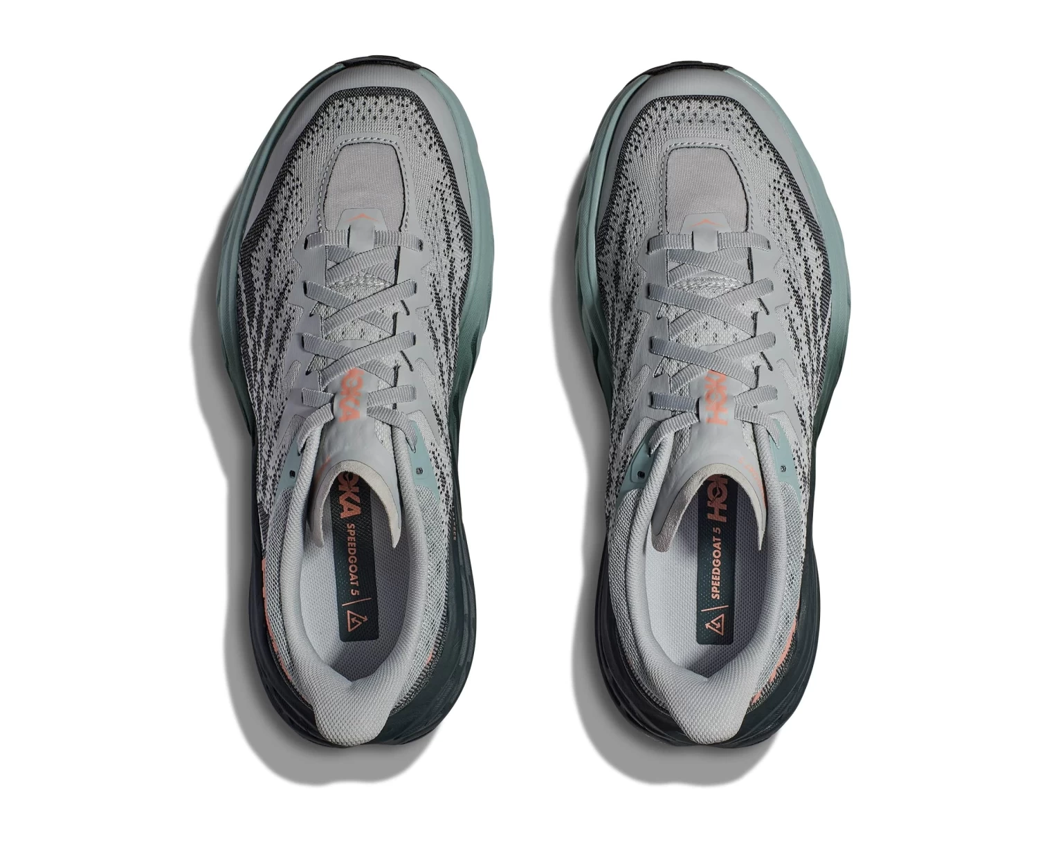 The Speedgoat 5 will have you feeling surefooted on the roughest of terrains. Featuring a new midsole that is lightweight and provides a more responsive ride with even more traction than before. The wider forefoot offers a more stable ride and an accommodating fit. The Vibram Megagrip rubber outsole provides exceptional grip in wet and dry conditions. The all-new updated upper brings this running package together providing breathability and overall comfort.Â