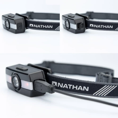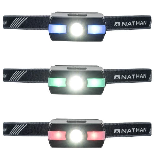 Nathan’s run-specific headlamp family has a new edition, and it’s lighter than ever. Thanks to a powerful USB-rechargeable battery, the super-light Neutron RX Kicks out 200 lumens of crisp RUN-Right Lightβ’ on roads, trails, paths, and everywhere in between. It also features red, green or blue strobe strips up front, and as an added bonus, the entire head strap is made of reflective material!