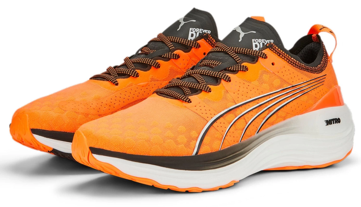 Experience support and guidance in a new way with the ForeverRun Nitro from Puma. The updated NITRO midsole has been developed with two different densities, a softer core with a firmer rim. This combination of foam with the addition of an asymmetrical heel counter assists in keeping the foot in place, offering a more supportive ride. This support continues through the outsole with a wider medial rubber segment to help stabilize late-stage pronation.