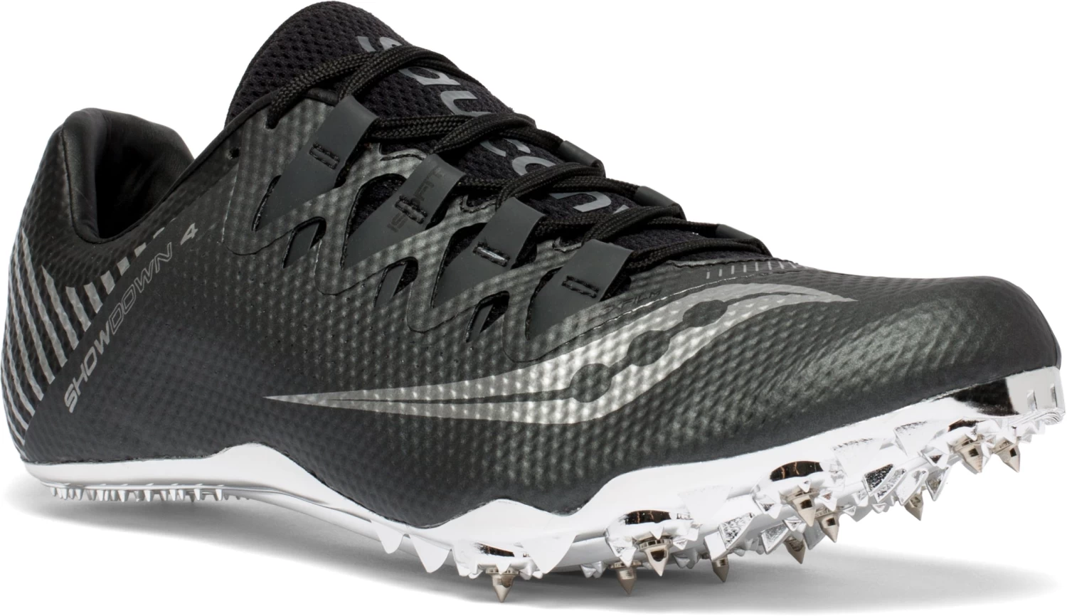 It’s goin’ down for real. Fast is your only option in our Showdown 4. The new upper design features FLEXFILM overlays, and ISOFIT lacing system to keep you securely fastened to the full-length 10-Pin Pebax® spike plate. Get ready to rip up the track and the record books.