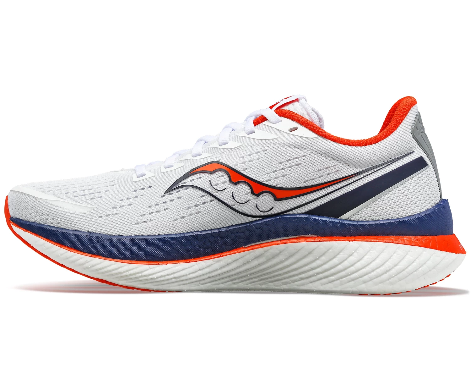 The Endorphin Speed 3 took the award-winning Endorphin Speed 2 and made it even better. For a limited time, you can get your own pair commemorating this year’s marathon here in Boston. The Speed 3 features an updated nylon plate that has been redesigned as a winged plate and now also incorporates an S-curve for added energy return and support. Built with Sauconys ultra-light and responsive PWRRUNPB foam, you’ll be experiencing light and fast cushioning in each step.Â